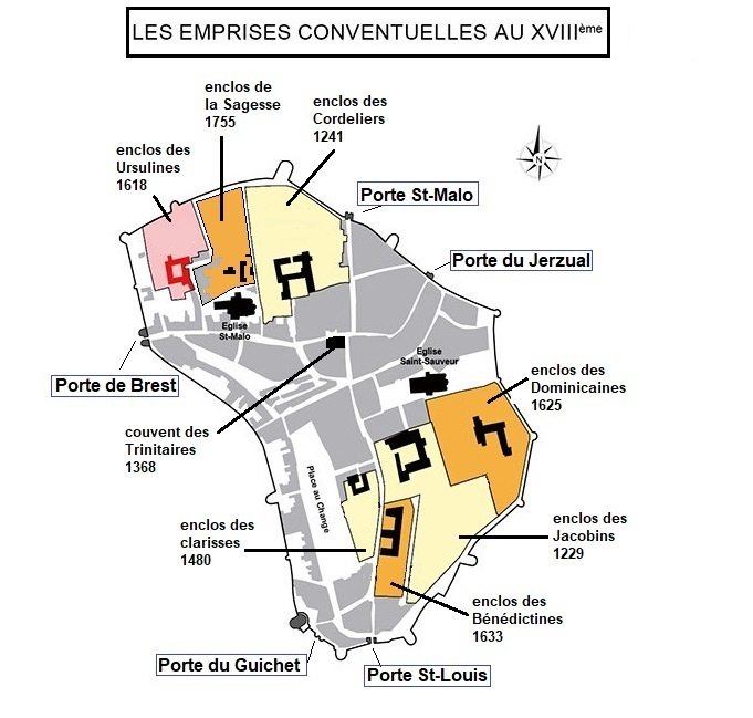 A la fin du XVIème siècle, après plus de 30 ans de guerre de religion entre protestants et catholique, les fortifications Dinannaises perdent leur usage défensif et Dinan change de visage, et devient une ville de couvents.