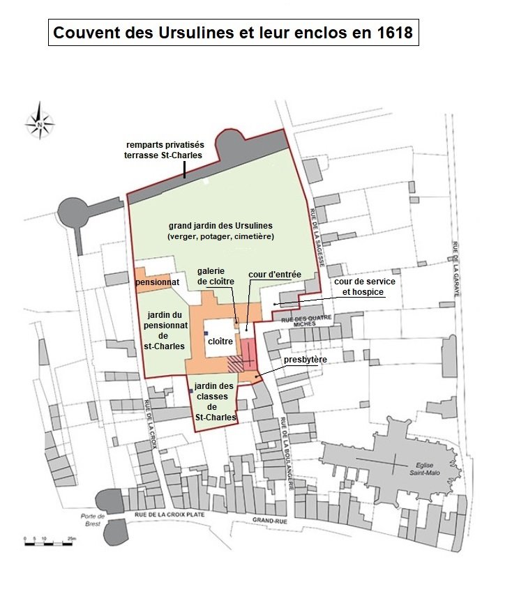 En 1615, Guillaume LeGouverneur, évêque de Saint-Malo, autorise l’établissement des Ursulines à Dinan.